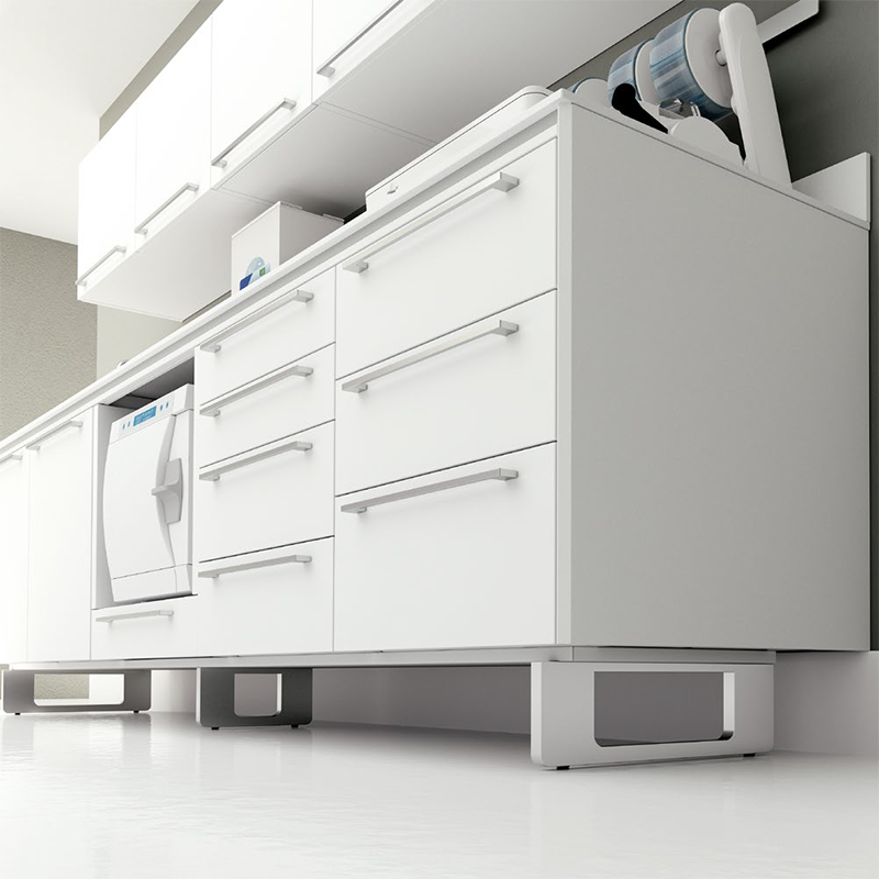 Selon les principes du design italien, ZILFOR a créé une nouvelle gamme de meubles dédiés à la stérilisation, la gestion et le traitement du matériel infecté. Dans le cycle de stérilisation, une attention particulière est accordée à l’eau, qui est gérée selon les normes de sécurité les plus strictes. Grâce au plan de travail escamotable, on peut intégrer des appareils multifonctions dans la composition, adoptant ainsi un système innovant et peu encombrant. Enfin, vous pouvez opter pour l’élégance d’un socle fermé ou pour le confort, avoir des pieds en aluminium qui permettent un nettoyage plus facile.